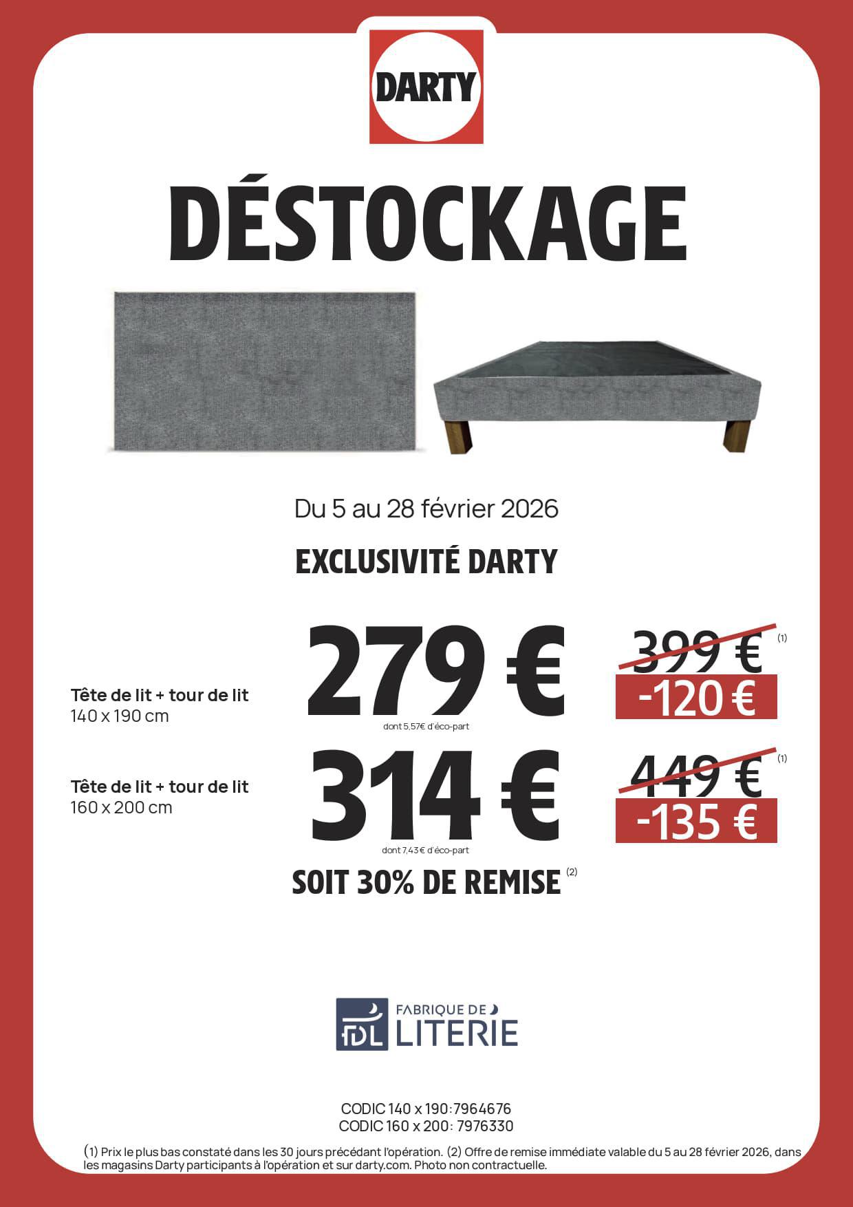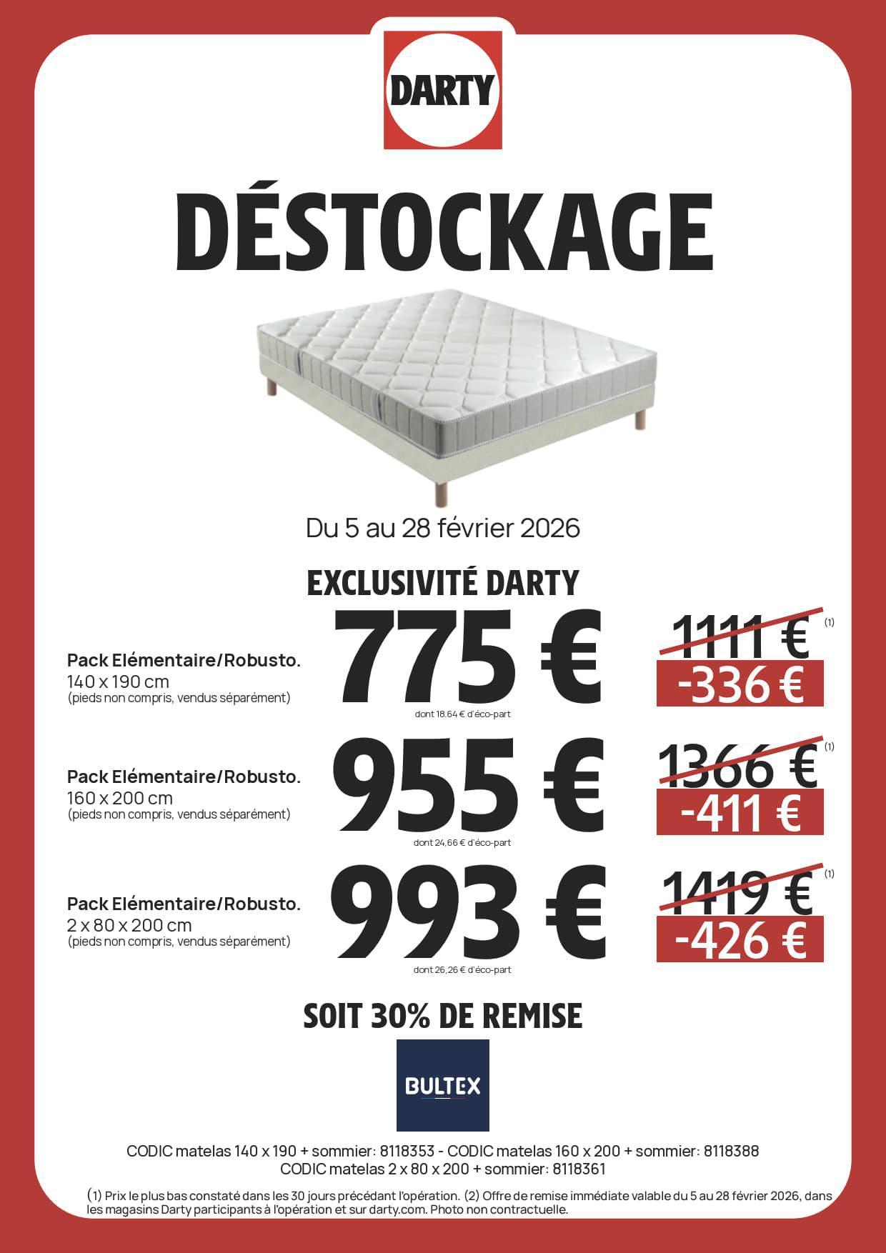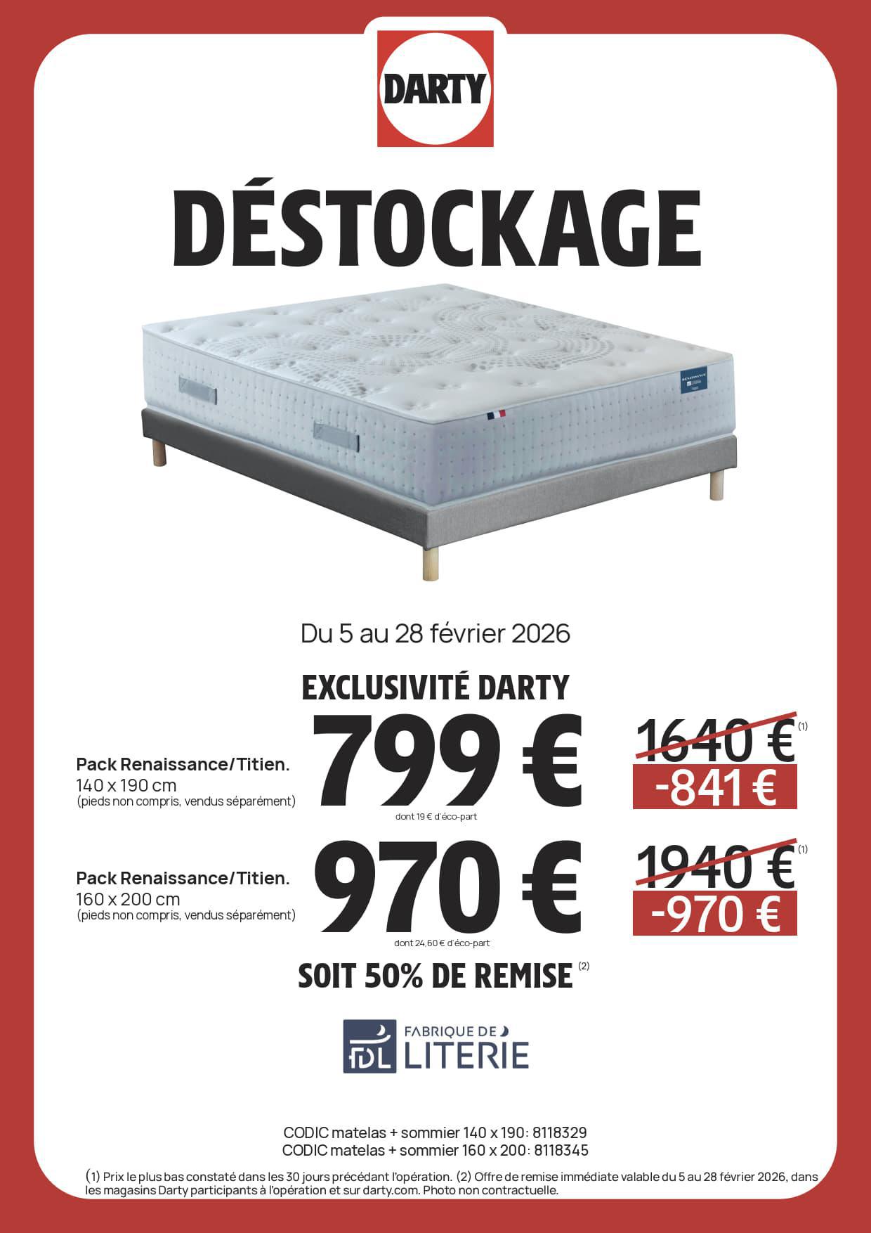 DARTY : DESTOCKAGE Literie Février 2026 Jusqu'au 28 février 2026