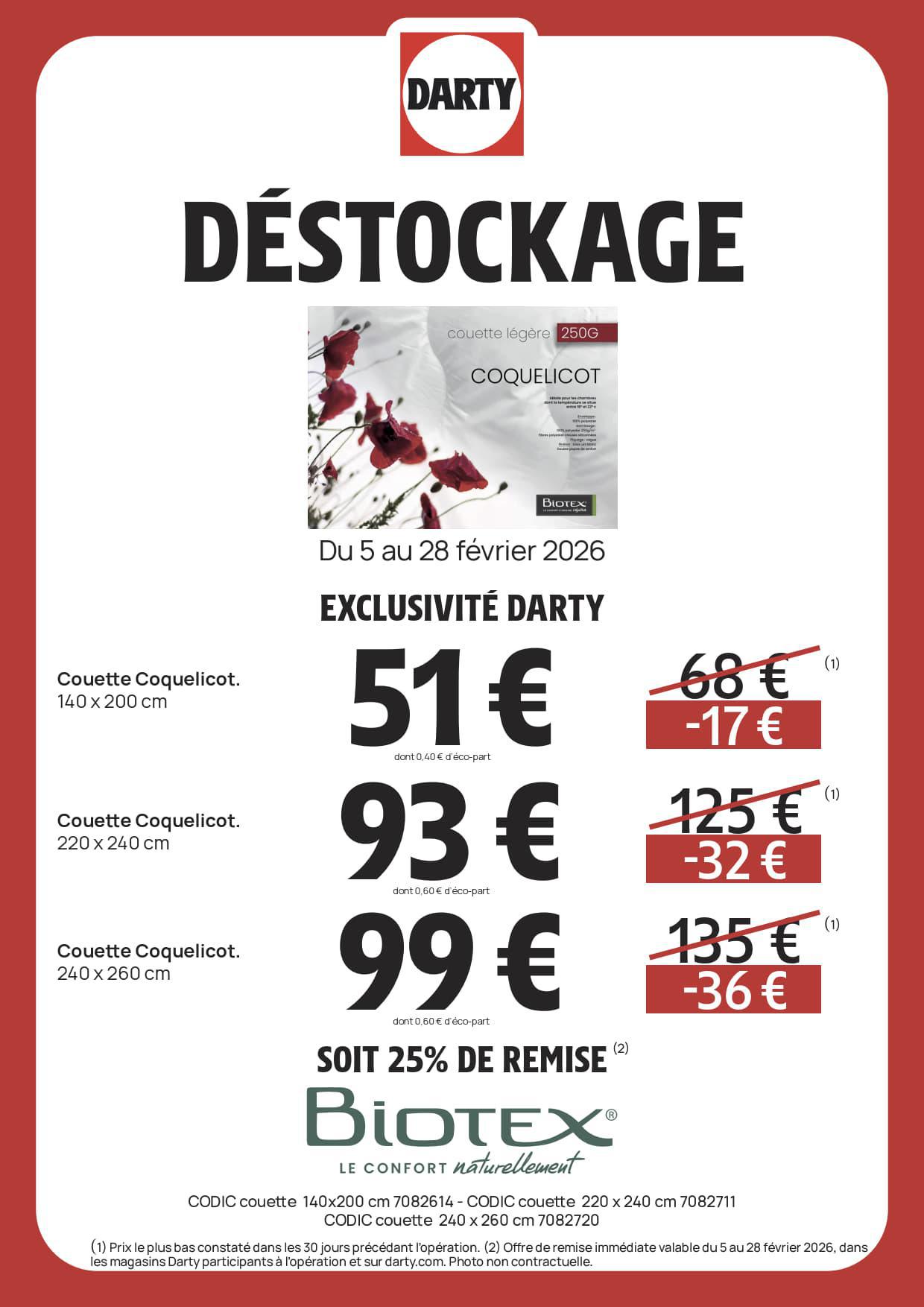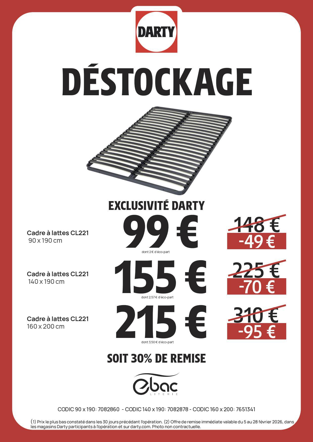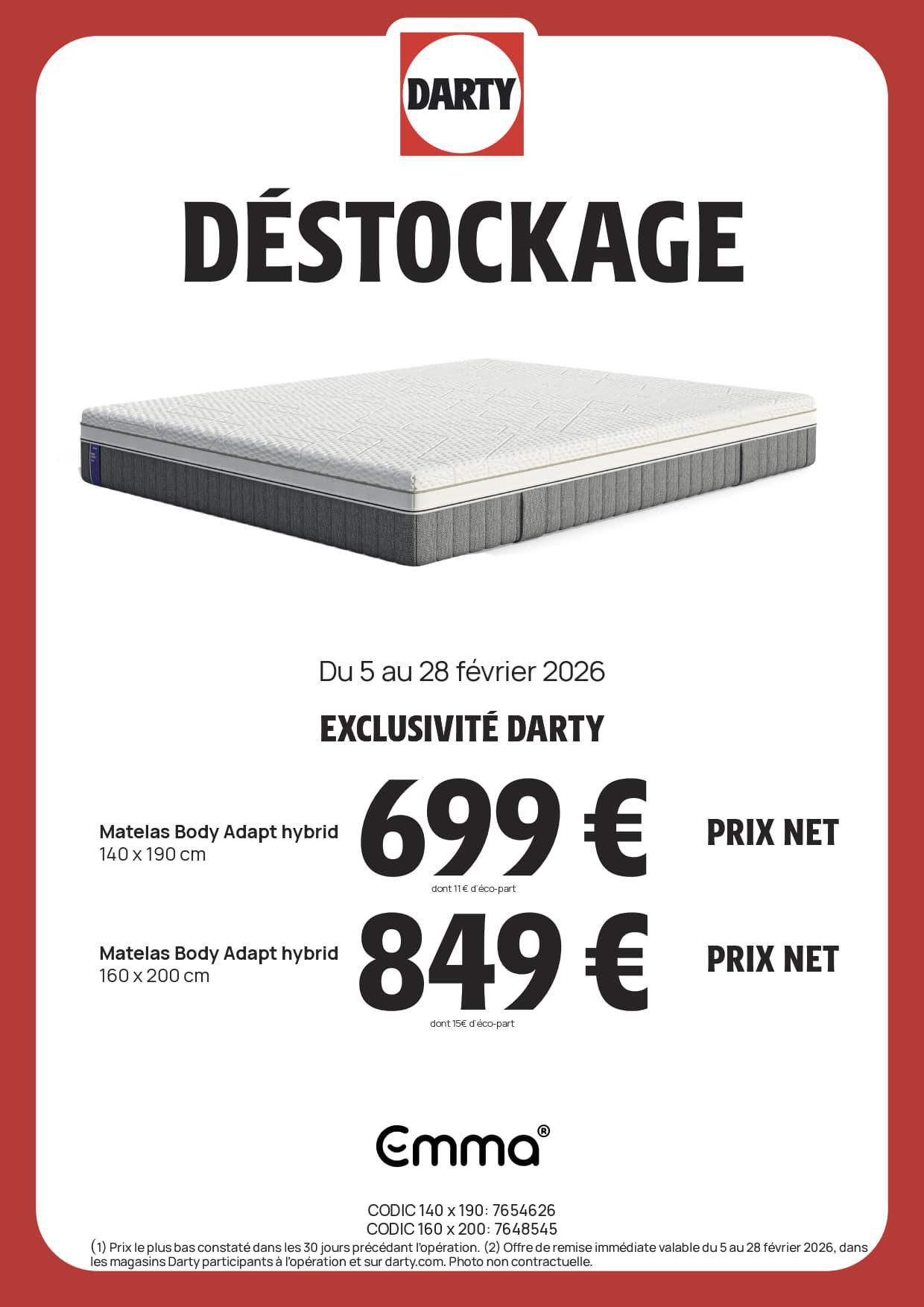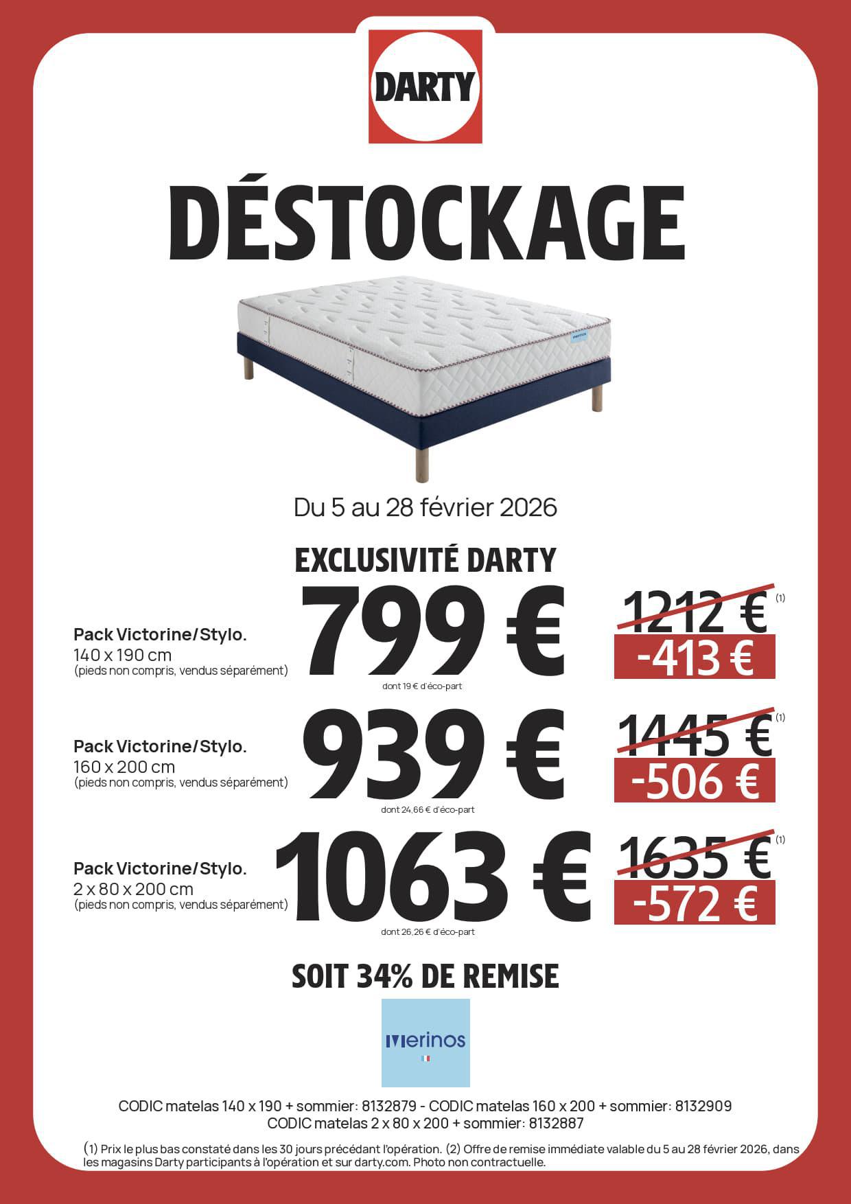 DARTY : DESTOCKAGE Literie Février 2026 Jusqu'au 28 février 2026